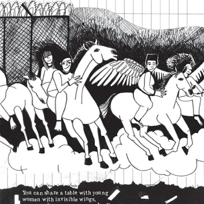 Poetry comic published in The Normal School about dreaming your way out of confinement.